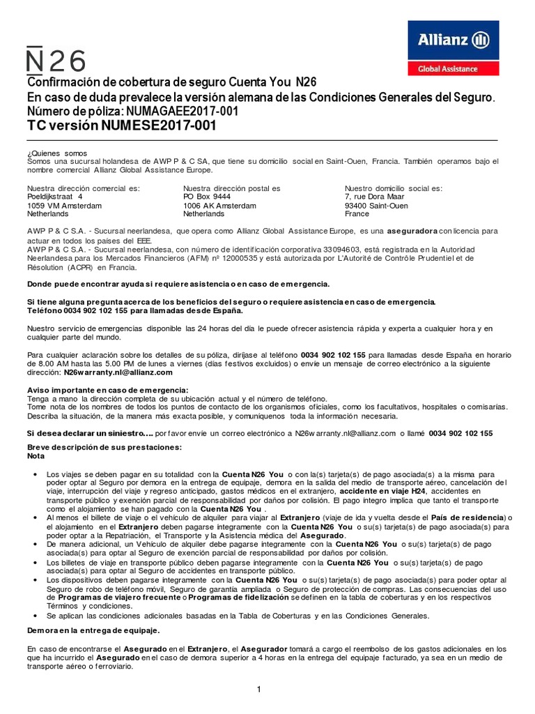 Seguro N26 Allianz 2019 Poliza De Seguros Seguro Allianz Telefono Seguro Coche W Coche