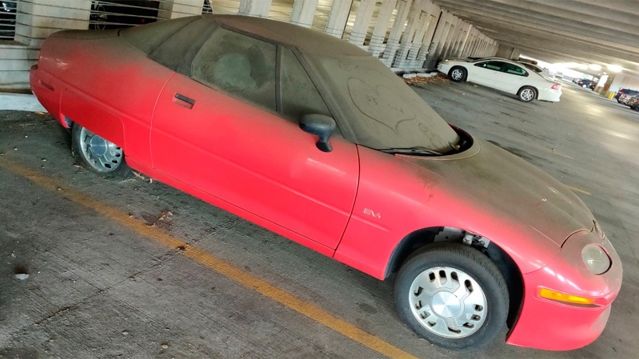 Un Ejemplar Del Coche Electrico Gm Ev1 Aparece Abandonado En Un Parking Motor Es Coches Skoda De Segunda Mano Las Motos Pueden Aparcar Donde Los Coches