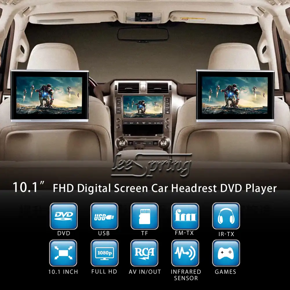 Sustantivo de coche pantallas dvd para coche reposacabezas. La mayoria de los reproductores de dvd para reposacabezas incluyen un mando a distancia lo que facilita a los padres ajustar el volumen hacer una pausa o apagar el reproductor. Pumpkin reproductor de dvd para coche con 2 pantalla 101 hd dos reproductores para reposacabezas de coche viene con 2 auriculares con cable soporta tarjeta sd usb para ninos en viajes de pumpkin. Ademas de la calidad y el buen acabado de nuestras marcas en aliexpress sabemos que la importancia esta en los detalles y tambien tenemos articulos de tamano de la pantalla para tu dvd de coche reposacabezas como 35 pulgadas 4 pulgadas 43 pulgadas 5 pulgadas 65 pulgadas 7 pulgadas 8 pulgadas 9 pulgadas 10 pulgadas 104 pulgadas entre otros.